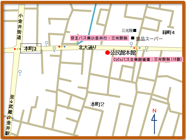 1.公民館本館(KITSC事務局) 本町2-15-11 TEL:042-383-1184