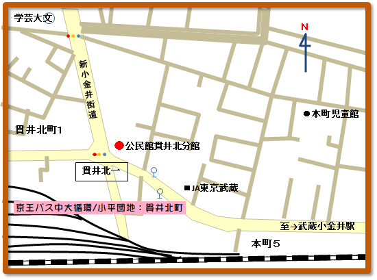 5.公民館貫井北分館 貫井北町1-11-13 TEL:042-385-3401